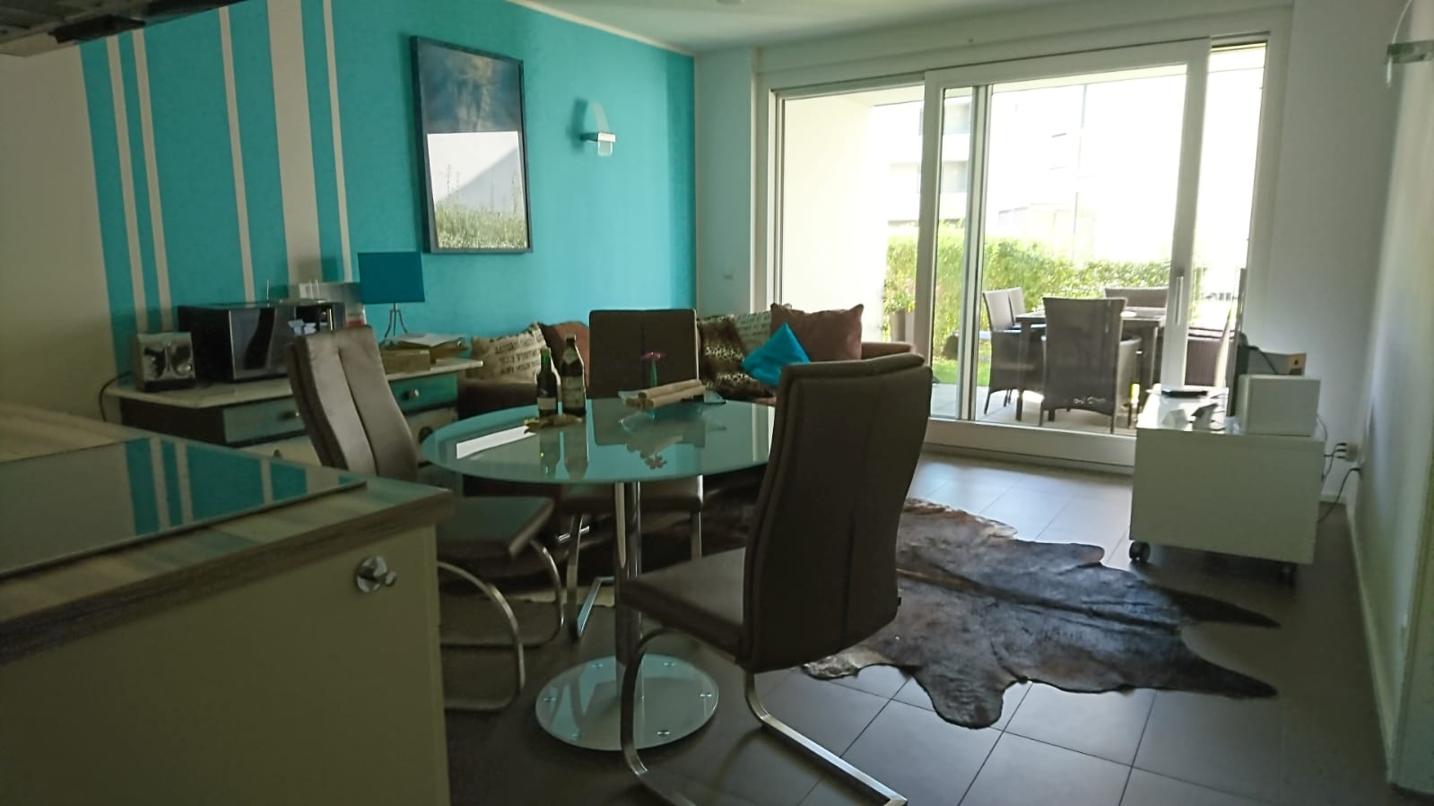 Die Wohnung mit Blick in die große Grünanlage (Innenhof) besticht mit der großen Terrasse und einem kleinen Gartenanteil. Die große Fensterfront sorgt für helle Räume. Die Wohnung verfügt über zwei Schlafzimmer und ein Wohn-Schlafzimmer. Das Bad ist mit einer bodenebenen Dusche ausgestattet. Der Fußboden ist mit Fliesen und Fußbodenheizung versehen. Die Wohnung bietet Platz für 5-6 Personen. Zu der Wohnung gehört ein Tiefgaragenstellplatz, diesen erreicht man problemlos über einen Aufzug.